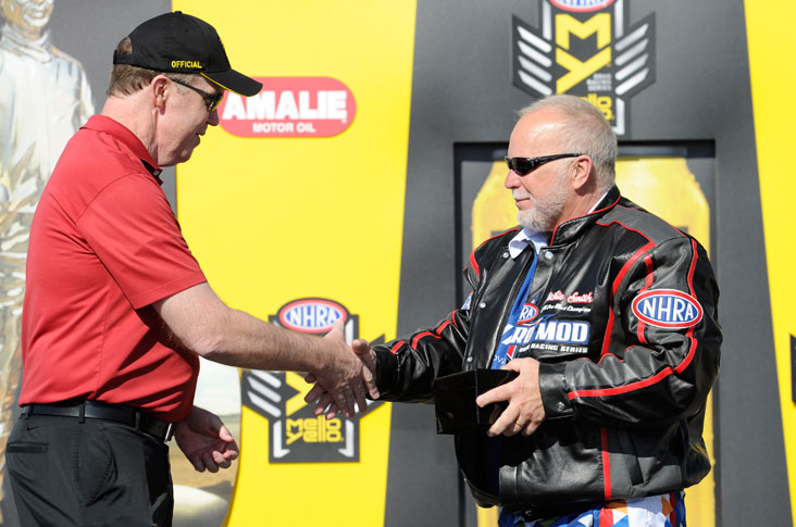 “In 2013 I raced Antron in the finals and I felt we had a good shot at winning,” he recalled. “Even though we were the runner-up, I was able to watch several good friends win in Sportsmen. And I don’t like to lose, it was hard to be mad after losing Terry in the semifinals last year. This was his first trip to the finals and he had struggled so many times at his sponsor’s race. When we got out of our cars he picked me up and was swinging me everywhere. It’s hard not to smile when he did that.”