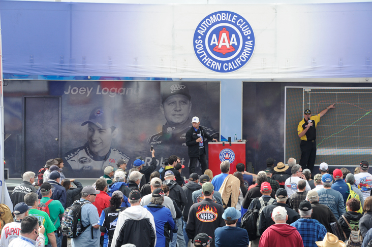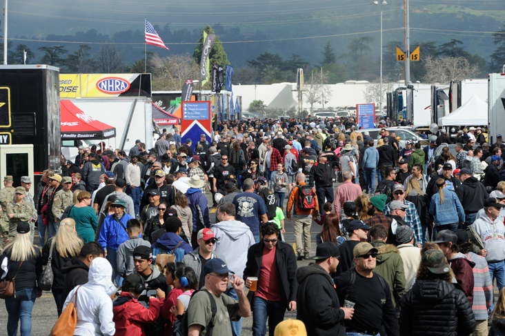 The pit area at Auto Club Raceway at Pomona was packed with race fans taking in the exciting action from the season opener.
