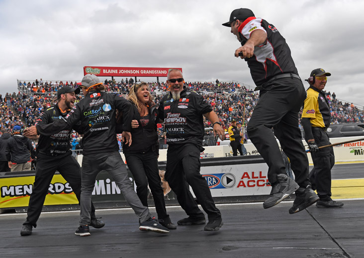 The Force sisters, Brittany and Courtney, won’t soon forget the 2014 Topeka event where the siblings both qualified No. 1. Brittany led the Top Fuel field for the first time in her career with a 3.746 and reached the semifinals. Courtney qualified No. 1 in Funny Car with a track-record 4.00 and went on to win the race, beating Dale Creasy Jr., Jeff Arend, Tommy Johnson Jr. and Cruz Pedregon, and score the 100th victory by a female driver in NHRA Professional competition.