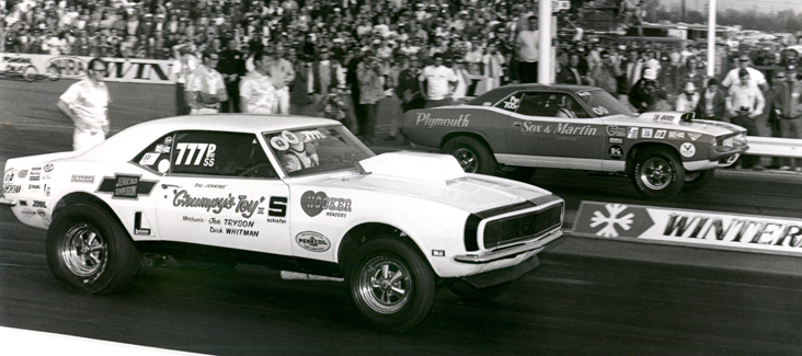 The field consisted of five Hemi Plymouths, five big-block Chevy Camaros, three SOHC Ford Mavericks, and three Hemi Dodges.