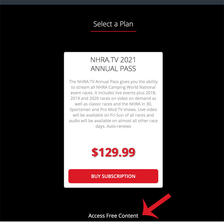 This action will return you to the NHRA.tv homepage. Click “Live Events" to access livestream day of the event.