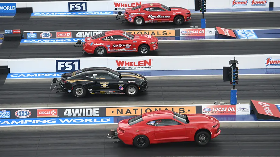 Bill Skillman came from behind to take the Circle K NHRA Four-Wide Nationals victory, the first race where the Chevrolet COPO Camaros, Ford Cobra Jets and Dodge Challenger Drag Paks of the Constant Aviation Factory Stock Showdown class have competed in a four-wide format.