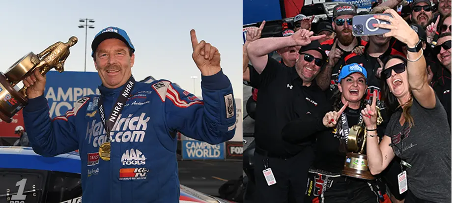 "When you have four or five races where you just can't get it done and you're getting beat by all the young cats out there, you think, will I ever win again? Can I still do this? It's great to get a reassurance," said Anderson. "Erica has gotten that the last couple of months, and I have a car that can win. I feel good, and she's absolutely back on top of her game. She's going to be a hell of a challenge through the playoffs – and I expect to be, too.