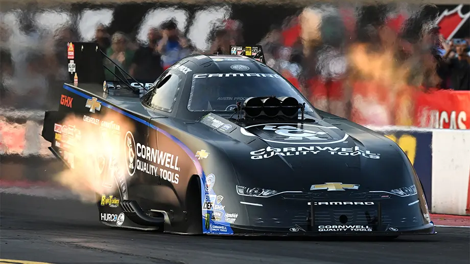 Prock, who has been the No. 1 qualifier 10 times in the first 14 races this season, went 3.849-seconds at 338.43 mph in his Cornwell Tools Chevrolet Camaro SS, posting a career-best speed and just missing out on the track record. Prock opens the Countdown to the Championship playoffs in the points lead, looking for his sixth win of the season. He comes in on a good note after winning the U.S. Nationals in Indy and put on a spectacular show on Friday at Maple Grove Raceway.