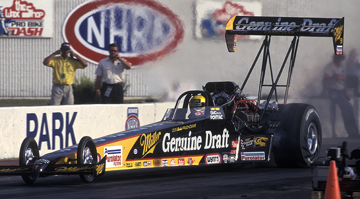 The second-generation driver won Indy in his spectacular rookie season in Don Prudhomme’s Wes Cerny-tuned Miller Genuine Draft car, returning “the Snake” to the Indy winner’s circle for the eighth time and his first since 1989 as a Funny Car driver.