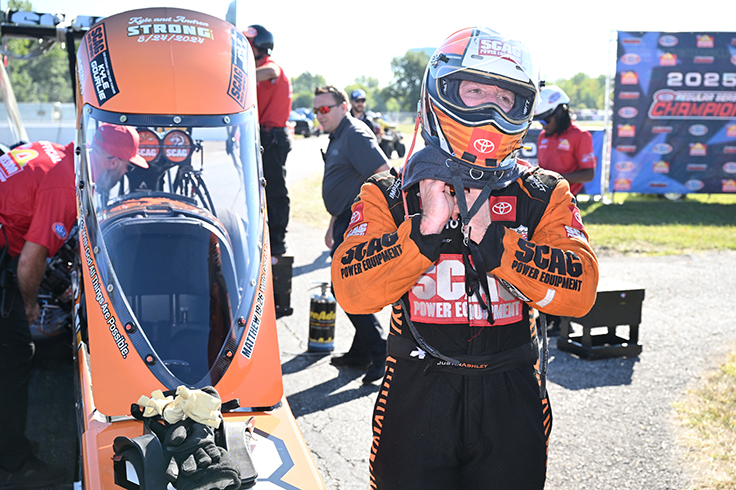 Since the day he first strapped into a Top Fuel dragster, the buzz around Justin Ashley has been his reaction times. He’s not just quick, he’s incredibly consistent with a seemingly nonstop string of lights that are .040 or quicker. It’s the sort of pace that no other driver in the class can currently match with any consistency, and it’s won a lot of races for the Scag team.