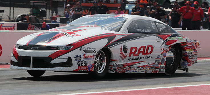 Dallas Glenn continued his hot run in the playoffs with two more strong Pro Stock runs on Saturday, staying on top thanks to Friday’s 6.535 at 209.69 in his RAD Torque Systems Chevrolet Camaro. It’s the points leader’s second straight No. 1 qualifier and sixth this year, and he was also thrilled with the way his car is running in the playoffs.