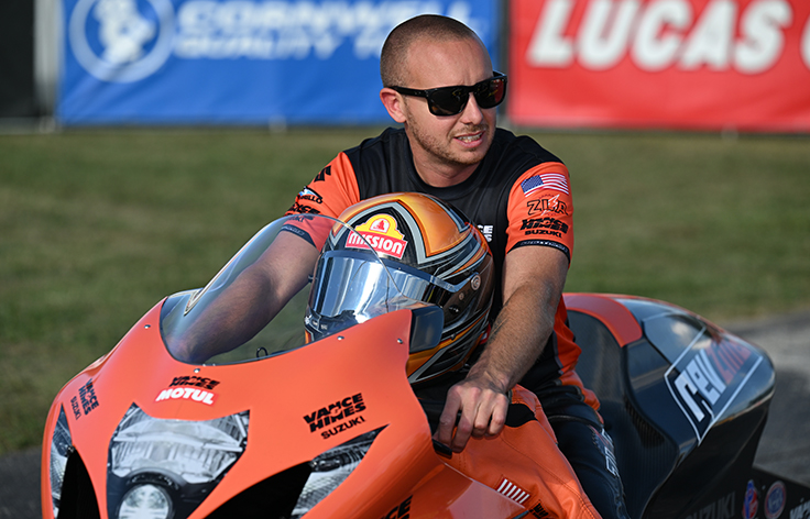 Four races into his Pro Stock Motorcycle career and Brayden Davis is going to race for a Wally at the Cornwell Quality Tools U.S. Nationals. Davis gave up an early advantage to teammate Richard Gadson but recovered to win, 6.811 to 6.867. Davis has been to at least the semifinals in each of his three starts with the Vance & Hines team.