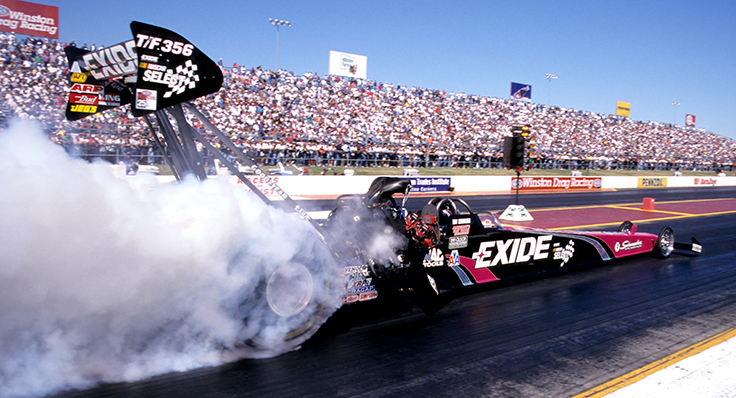 “My dad had been flying around on a plane with Art Hawkins from Exide, and they already had Jeff Burton driving the Exide car in NASCAR, so my dad asked them if they’d like to get into drag racing, and they put a deal together. We hired Bob Brandt as our crew chief and thrashed the car together. They won just seven rounds all year, three of which came in yet another runner-up, this one at the fall Houston event, and they started 1999 with veteran Dan Olson twisting the wrenches.
