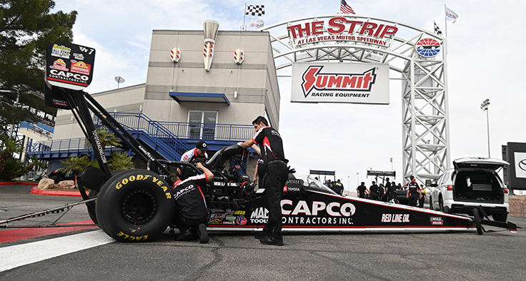 Ron Capps, who’s had an up and down last three races — a big explosion and crash in Phoenix, a Mission Challenge win in Pomona, and barely qualifying for the field here — also has fond memories of Las Vegas. It was at this event three years ago that Capps earned his first event win as a team owner.