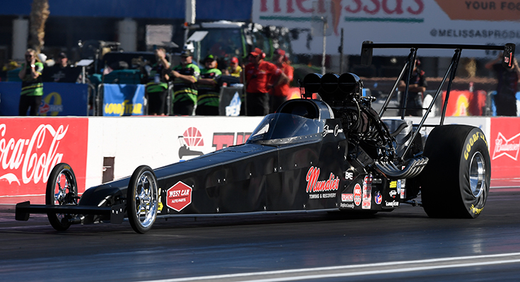 Tony Stewart loves Las Vegas. It was here in the fall of 2022 where he made his first NHRA final-round appearance, where he was runner-up in Top Alcohol Dragster, and where he won his first national event title the following spring at this event while still in Alcohol Dragster.