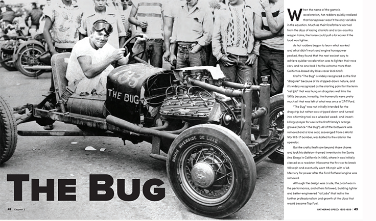 Starting with a blank sheet of paper and unfettered editorial control, we conceived a book that not only told the chronological tale of the history of the NHRA from its dry-lakes background to today’s palaces of speed, but also to salute the individuals who powered the sport and the technology that drove it there.