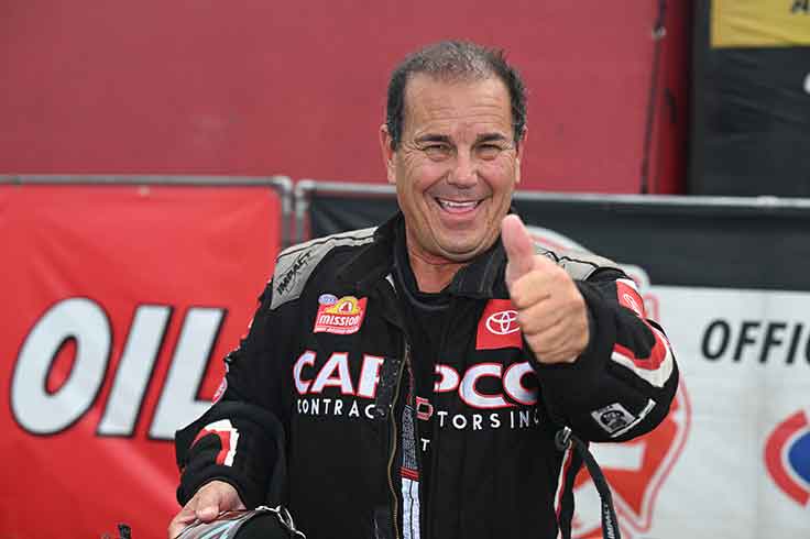 The best side-by-side race of the round? That was almost certainly the battle between Paul Lee and J.R. Todd. After an even start, Todd surged ahead slightly to win, 3.894 to 3.923, even though the DHL Toyota clearly wasn’t running on all eight cylinders at the finish line.