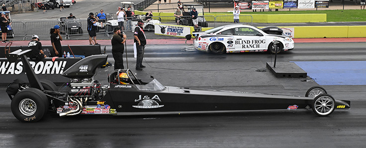Their return to racing at the Cornwell Quality Tools NHRA U.S. Nationals was a disaster, dropping a valve in both of their engines during the event. They regrouped and concentrated on the championship battle that had largely brewed down to them, East Coast racer Joe Carnasciale, and Northwest terror Jeff Lane, whose son, Cody, had won the championship the year before.