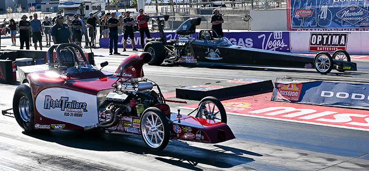 The team again went testing ahead of the return to Las Vegas for back-to-back weekends of national and divisional racing. As fate would have it, Taylor and Lane were paired in round one, in a race that showcased the best spirit of NHRA Sportsman racing. Taylor won easily, but Lane didn’t run him to the stripe, allowing Taylor to preserve his index.