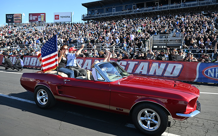 The Pomona fans roared their approval when Isky took a lap down the return road before the 2024 NHRA Finals in Pomona.