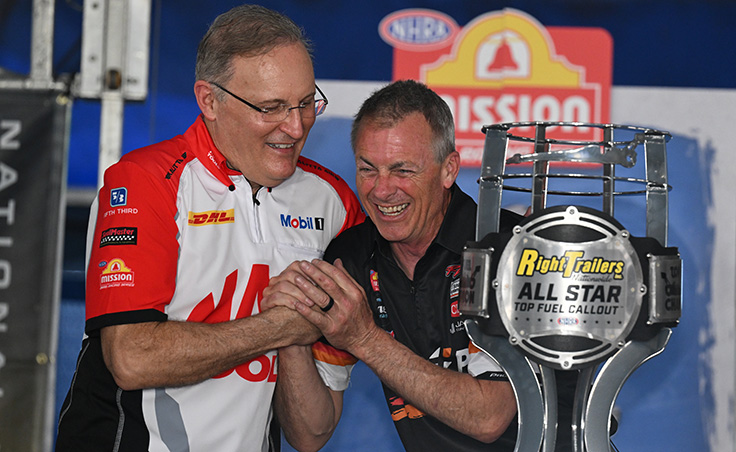 The field is set and the first-round matchups have been decided for Saturday’s Right Trailers Top Fuel All-Star Callout at the Amalie Motor Oil NHRA Gatornationals. The top three qualifiers for the yearlong program got to call out their fellow racers for the opening frame, and there were a few surprises and a lot of laughs and good-natured ribbing.