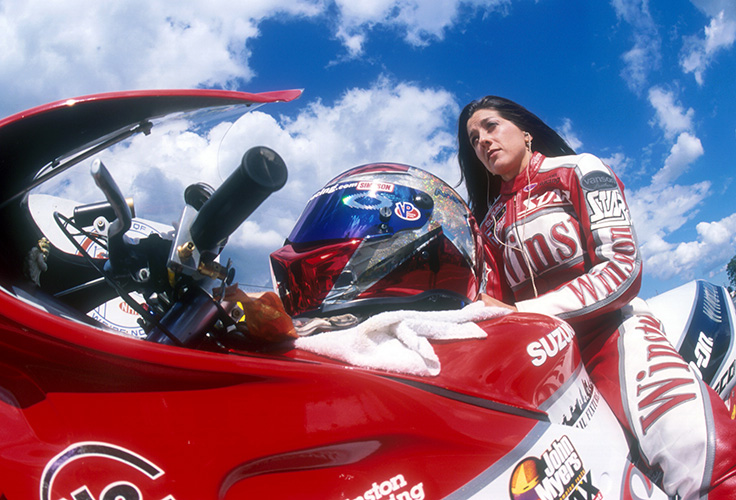 Angelle Sampey etched her name in the history books by becoming the second female NHRA world champion, following Shirley Muldowney’s groundbreaking Top Fuel titles. Competing in the Pro Stock Motorcycle class aboard her Winston/Star Racing Suzuki, Sampey delivered a dominant campaign marked by seven national event wins in 10 final-round appearances. She would go on to win two more consecutive championships, in 2001 and 2002.