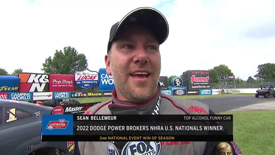 Reigning Top Alcohol Funny Car world champ Sean Bellemeur won the Dodge Power Brokers NHRA U.S. Nationals for the second time, racing his Steve Boggs-tuned Bartone Brothers Camaro to a 5.46 to defeat D.J. Cox Jr., as he did earlier this season in…