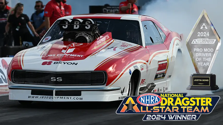 Racing in the Congruity NHRA Pro Mod Drag Racing Series in 2024 was a wild affair as no driver won more than one race and the championship battle went down to the final day of the season, and fans voted Justin Bond as National Dragster All-Star Team Pro Mod Driver of the Year.