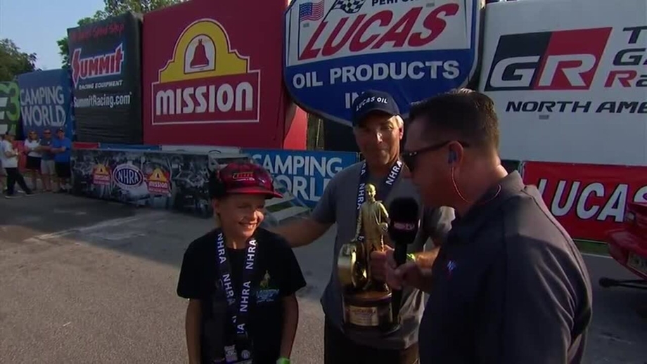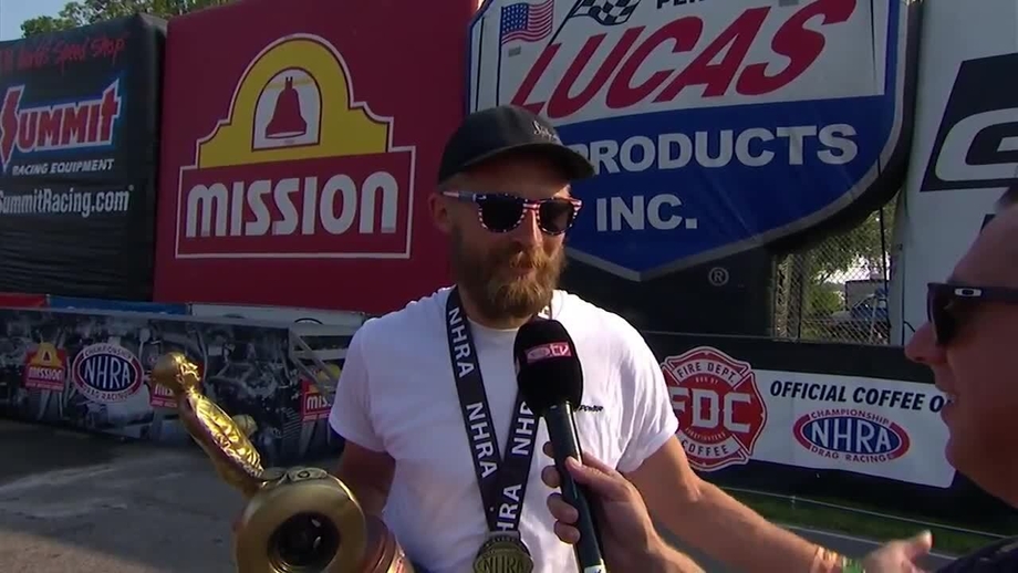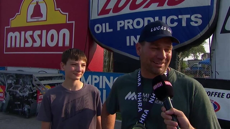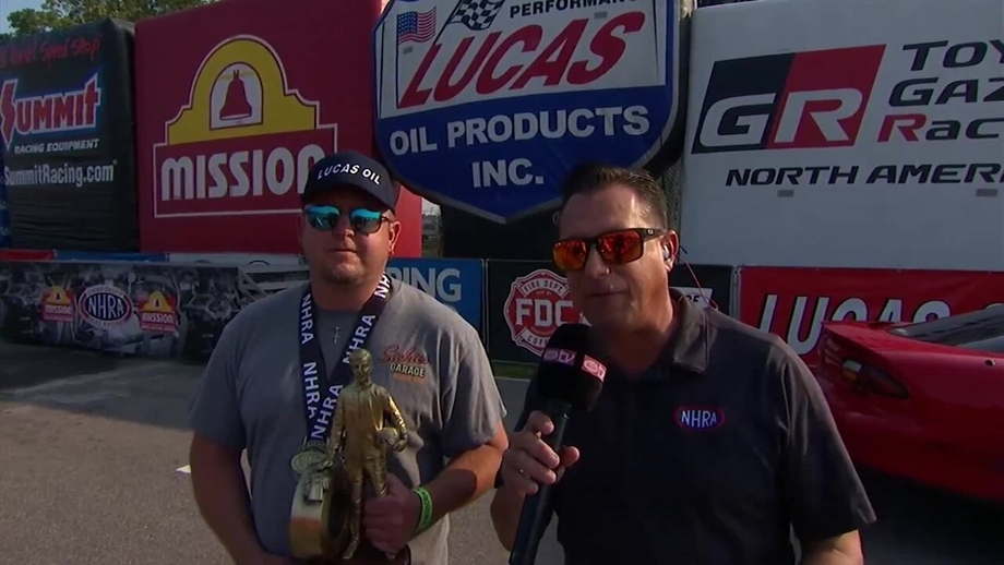 Michael Cheney thrilled the homestate crowd by winning a battle of two first-time finalists in Super Comp. Although the final round was decided early on Kris Whitfield’s foul start, Cheney nonetheless ran a near-perfect 8.907.