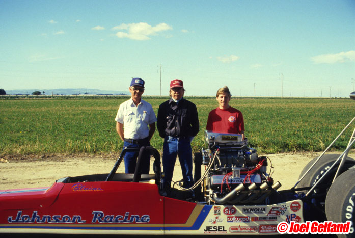 | "In 1988, I met Alan and Blaine Johnson through Ralph Gorr and became friends with their entire family. I knew they were building a new TAD at the farm in Santa Maria, so I drove up to shoot a feature on the car. This shot of Alan, Blaine, and dad Everett is a special one to me." | ![]() See bigger |