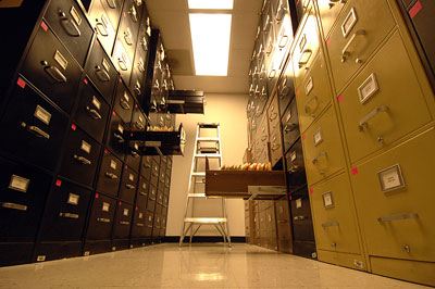 I kid you not when I say it's an amazing treasure trove of images. This room is perhaps of the coolest, lined floor to ceiling on both sides (note ladder in background) with file cabinets bursting with images – most of these black and white prints -- from the last 50 years. On the left are the alphabetic driver files – everyone from Johnny Abbott to Richie Zul – and on the right are the event files. We could charge admission to this room.