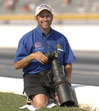 "I’ve been going to the track since I was a kid," says Marc. "My dad bought me a camera when I was 8. I took it to the track and I’ve been shooting cars ever since. I used to build model cars and light them on fire and shoot photos as they rolled a blaze down the driveway. I shot from the grandstands until I was old enough to get a starting line credential. I did some freelance work for various automotive publications before becoming the Assistant Editor of Jr. DRAGSTER in January of 1996. I was asked to join the National DRAGSTER Photo Dept later that year after Leslie Lovett passed away."