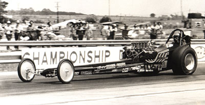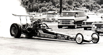 This is July 3, 1974, at Beech Bend, where Woosley drove the Woosley & Sharp A/Fuel Dragster to Pro Comp honors over Don Gerardot.