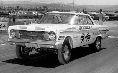 "One aspect of the original Funny Car craze that I should have mentioned is exactly how squirrelly the cars really were. You have to remember that they evolved directly from the factory F/X and match race stockers. Once Chrysler took off the gloves with the altered-wheelbase cars, the lid was off the bottle. At first, Ford prohibited their drivers from running match races against the Mopar-backed cars. The Ford drivers took a lot of heat for it but had no choice but comply or lose their sponsorship. Ford knew their A/FX cars were overmatched. The solution soon became apparent: nitro! As I remember it, 'Dyno Don' Nicholson and his stock-bodied Comet were first to make the move. The Mopars soon followed suit. Then, of course, came Ford's reply, with the Logghe-chassised flip-top Comets.