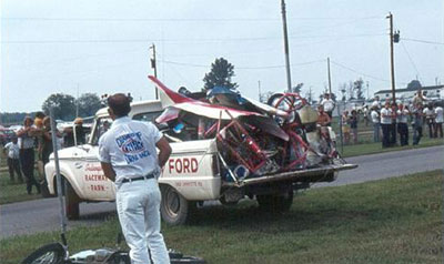 Remembered Godsey, "On Thursday, we had both [Funny Cars] in line and were near the head when Connie spotted 'Poncho' and Gene Domagalski coming to the front of the Top Fuel qualifying line. They were talking, and Connie told 'Poncho' he could get the car in the show and proceeded to climb in (he had never driven a rear-motor car). My belief is that in a front-motor car, you can be 15 to 20 percent sideways and see where you are, and in a rear-motor car, [at] that same percentage, you have lost control, which happened."