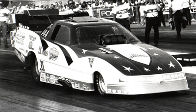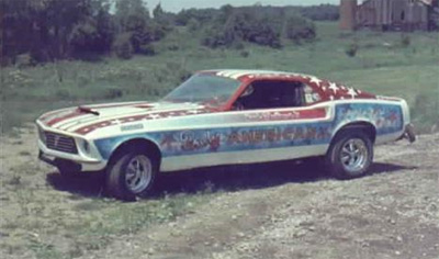 Greg Gorian reminded me that his old neighbor and my ol' pal, former Alcohol Funny Car racer Jim DePasse, used to have a nitro-burning Jeep named Fuelish American in the 1970s when he was still sand racing, and Russ Ganz, who owns the Grand Illusion Super Comp dragster that competes in Division 1, reported that the first rocket-powered Funny Car of his former neighbor Slam'n Sammy Miller was the Spirit of '76 Mustang II. Tom Lachance suggested the Segrini brothers' (Al and Lou) American Express injected Funny Car, which he said got its name because the car was financed by their personal credit cards.