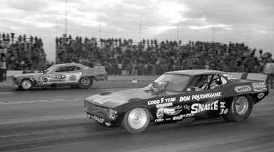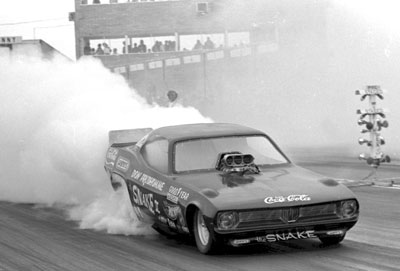 Don Thomas really dug the installment on the Snake III Cuda. “Here's the thing,” he testified. “I don't think ‘Snake’ or anyone else had any idea of the lasting impression and impact this unfinished race car would have on the very history of drag racing. It was merely to most if not all (at the time) just an incomplete, lethal throat ripper passing through on its way to the paint shop. Who knew?! Another characteristic that made this black, stealthy 'Cuda somewhat unique was its low-slung stance, which only enhanced that sinister black primer coat. Compared to other Funny Cars at the time, the attitude and profile of this piece was noticeably different. In its short stint in that form, it IS, and will forever remain, one of the iconic race terrors in drag racing history.”