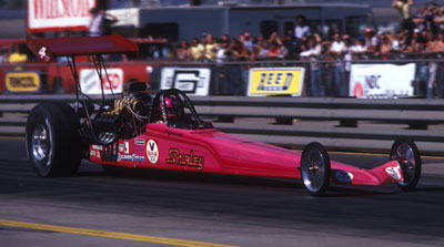 ![]() Shirley Muldowney, NHRA's second two-time Top Fuel champ (1977 and 1980) and its first three-time fuel dragster titlist (1982) |