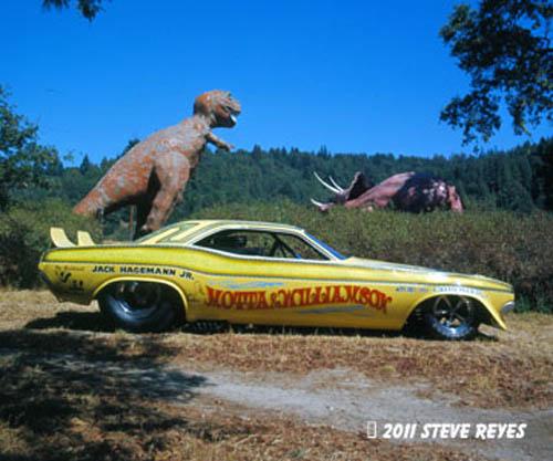 Dunn alternated drivelines, sometimes using a reverser and sometimes relying on crew power to get his 'Cuda back to the starting line after a burnout.