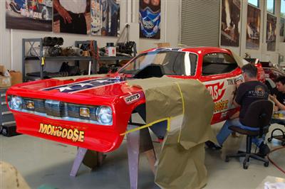 Collins drove McEwen’s second Duster for three seasons and through a couple of different paint schemes, and Collins later bought the Dusters from McEwen, a fact confirmed by Chris Horn, who was a nitro crewmember during that time and remembers well what became of one of the red Dusters.