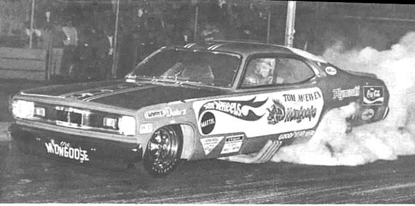 Shortly after the roof spoiler went away. Squint real hard and use your imagination, and you can see the primer. Feb. 14, 1970, Drag News