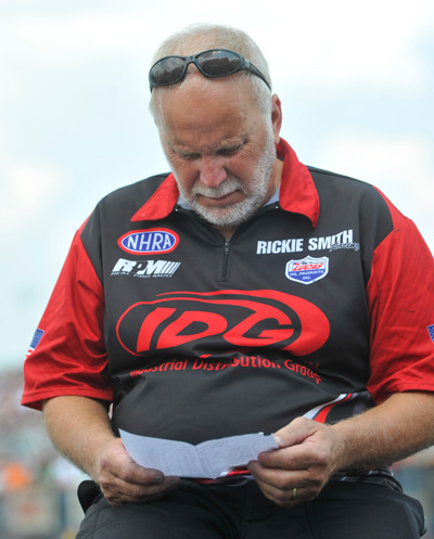 The battle for the championship in the NHRA J&A Service Pro Mod Drag Racing Series is not over yet, but Rickie Smith’s odds to win a third title appear to be very strong. Smith won his first-round battle Saturday afternoon and watched while his closest pursuer, Charlotte champ Bob Rahaim, lost in round one. Rahaim lost to Troy Coughlin, the only other driver still mathematically in the hunt.