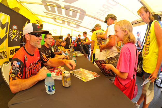 Charlotte Pro Stock Motorcycle winner Chip Ellis, Pro Stock ace Vincent Nobile, and Mello Yello world champs Antron Brown and Del Worsham took part in the Mello Yello autograph session with fans.