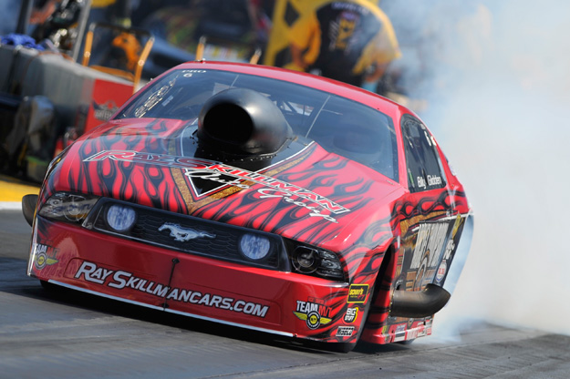 The battle for the J&A Service Pro Mod championship will carry into Sunday, when Rickie Smith will need just to win his second-round race with 2010 season champ Von Smith (no relation) to claim his third championship. Von, however, will be no pushover as he qualified No. 1 with a 5.81; Smith qualified No. 8 with a 5.87.