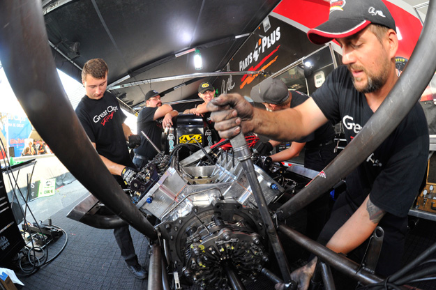 From back to front and top to bottom, the crews of the NHRA nitro teams wrenched, torqued, and massaged their 10,0000-horsepower machines between runs to prepare for another round of battle.