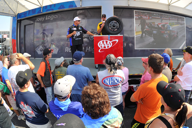 AAA Funny Car driver Robert Hight and NHRA's Alan Reinhart taught Nitro School to eager fans from the AAA stage in the pits.
