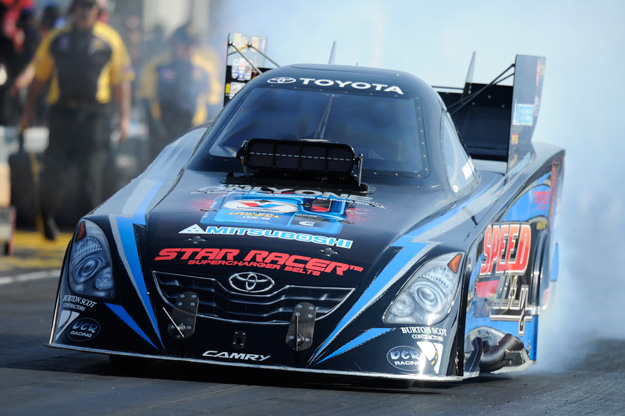 J.R. Todd, winner this year in Sonoma, is looking good for his second season win after a successful quartet of passes: 3.901 in Friday’s hot session followed by a 3.772, a 3.781, and a 3.750 that was the second-best run of the final session behind Tony Schumacher’s 3.740.