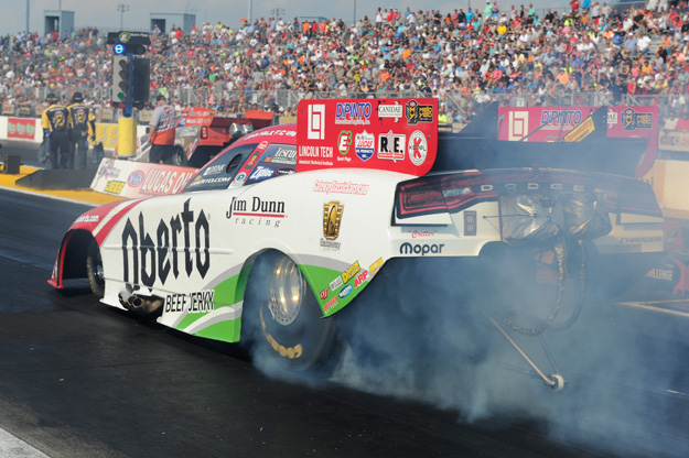After a disappointing outing in Charlotte, Jim Dunn sent a lot of parts out for inspection and found some issues in the bellhousing as well as the fuel system that were rectified. They sat out Q1 thinking there was nothing to be gained by running in the heat, but driver John Hale came back with a 4.17 in Q2 that ranked them just No. 13, meaning the e.t. would not carry over into Saturday’s effort.