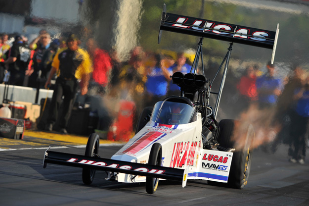 Richie Crampton and the Lucas Oil Top Fuel team went 0-for-2 Saturday with a pair of aborted runs, but they held on to the top spot with Friday’s 3.733 best. Crampton will take on No. 16 qualifier Kebin Kinsley in round one.
