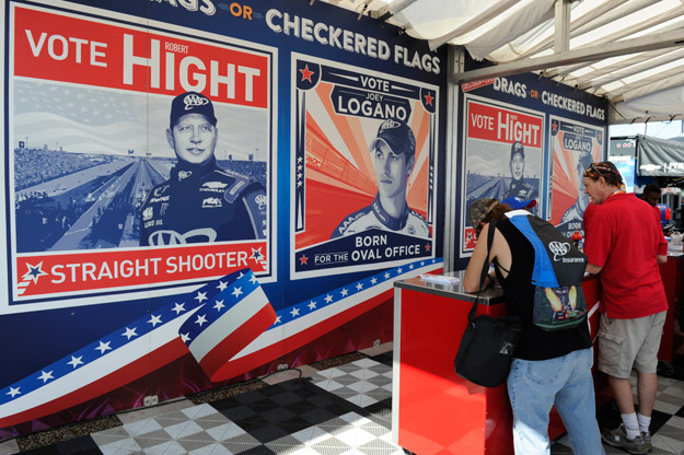 Robert Hight, representing event sponsor AAA Texas, is in another battle off the track in a fan-voting poll with NASCAR teammate Joey Logano in the Drags or Checkered Flags contest. Hight took to the AAA stage to plead his case, and fans took to the voting machines to support him.