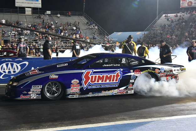 Points leader Jason Line certainly helped his cause in his chase for a third world championship when he was among the quickest two in both sessions today, including posting a 6.56 in the first qualifying round that gives him the provisional pole heading into Saturday. That run and his 6.58 in Q2 gave Line five qualifying bonus points today.