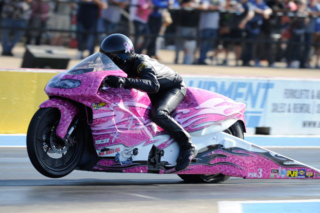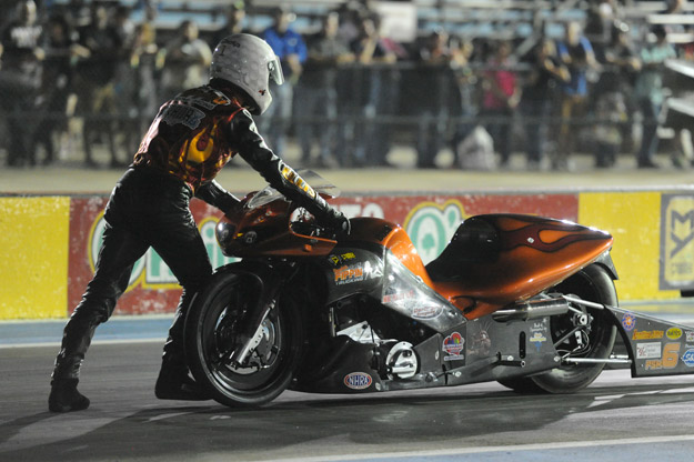 There is an old adage that states, “Getting there is half the battle.” That certainly rings true for Pro Stock Motorcycle riders Matt and Angie Smith, who had an adventure-filled trip to Texas Motorplex. As they were driving along Interstate 20, the Smiths had a tire blow on their hauler, which created more than just the need to replace the tire.