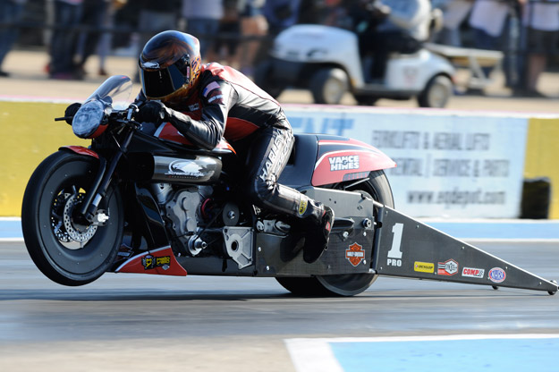 They’re Nos. 1 and 2 in the Pro Stock Motorcycle points, and that’s exactly where the Vance & Hines Screamin’ Eagle Harley-Davidsons sit following the opening day of qualifying at Texas Motorplex. Andrew Hines is No. 1 with a 6.81, followed by teammate Eddie Krawiec with a 6.82.