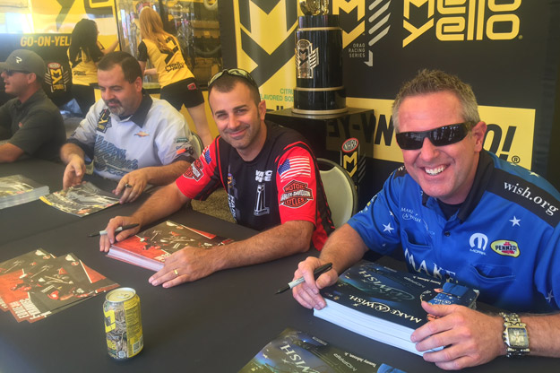 A popular draw every Saturday is the autograph session in the Mello Yello Powerhouse. Today’s session featured, from left, Steve Torrence, Chris McGaha, Eddie Krawiec, and Tommy Johnson Jr.
